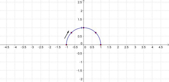 The third point is 3 intervals to the right of the y-axis; this makes it positive, and 3(0.25)=0.75 for the x-coordinate. It is 3 intervals below the x-axis; this makes it negative, and 3(0.25) = 0.75, making the y-coordinate -0.75. This puts the third point at (0.75, -0.75).