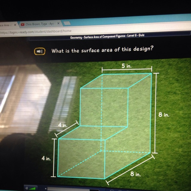 ⇒ Surface Area of Design = 104 in.² + 72 in.² + 40 in.² + 20 in.² + 20 in.²