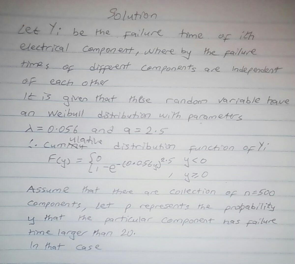 the probability that at least 125 of the 500 components will have failure times larger than 20 is 0.7939
