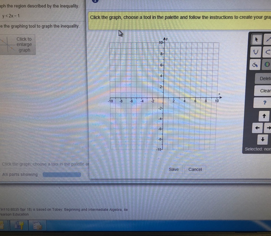 After, check the inequality - it is Y is less than the equation so you will be filling in everything below the line you graphed