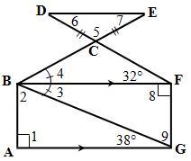 ∠BCF = 180° - (38 + 32)° ← sum of angles in a triangle )