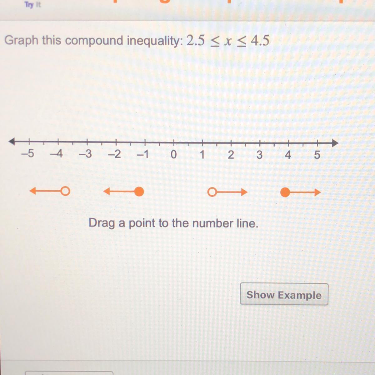 Given that inequality is 2.5 ≤ x ≤ 4.5, we have;