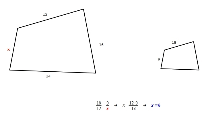 Well the sides of these 2 quadrilaterals are proportional to each other , so you would have to find the scale factor of the 2 then see which sides have already proportional pairs , then multiply *or / to find the last one .