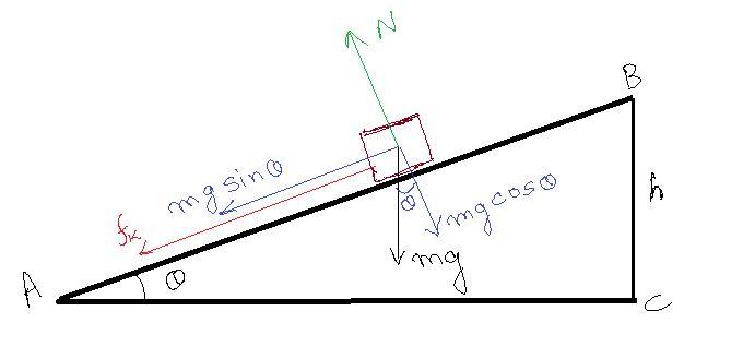 Kinetic energy at the bottom = work done by frictional force + potential energy at the top