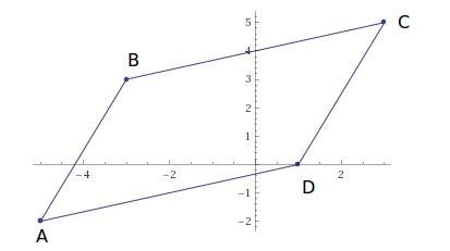 A(-5, -2), B(-3, 3), C(3, 5), D(1, 0) set of vertices forms a parallelogram