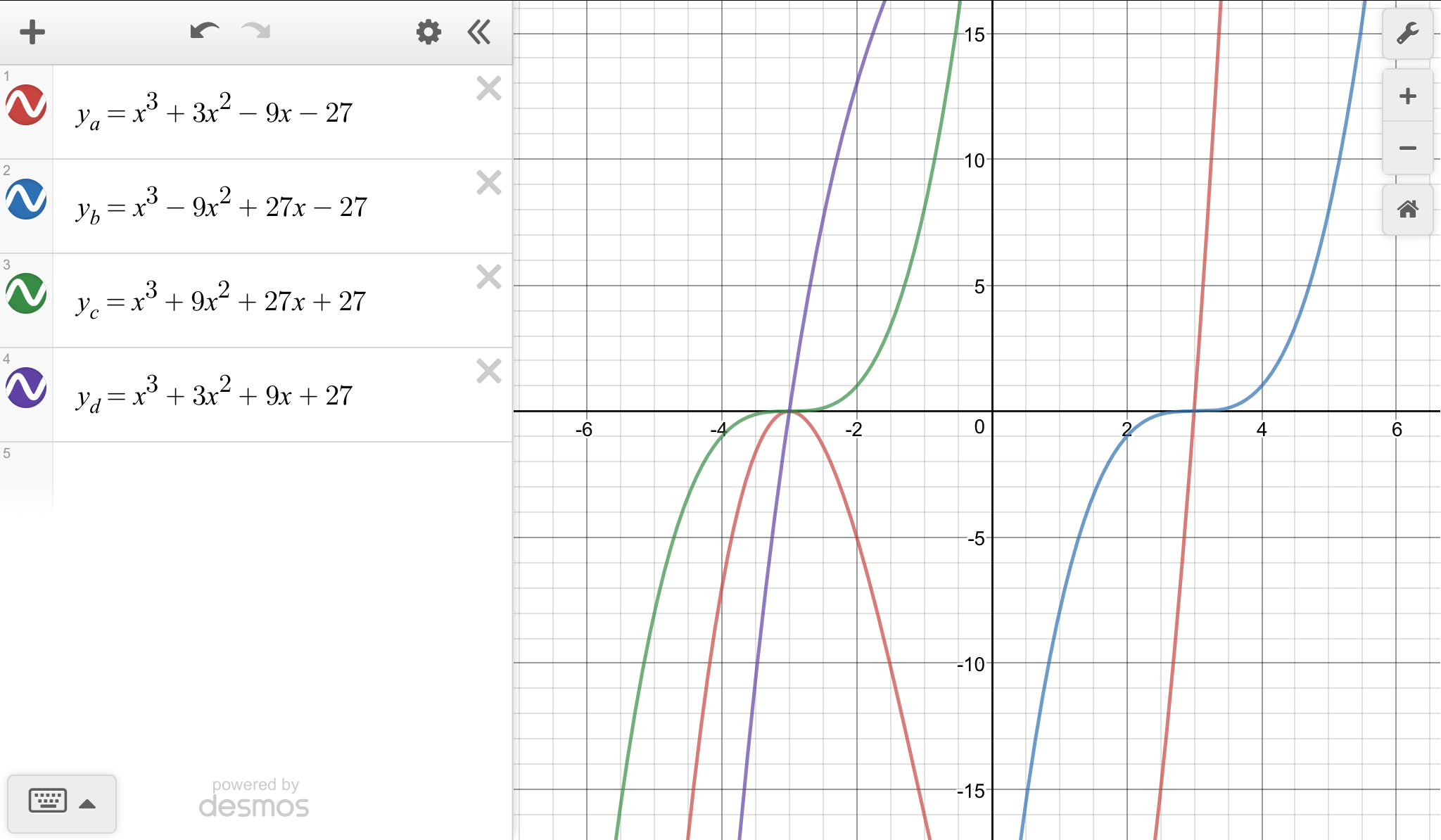 C: F(x) = (x +3)³ . . . . 3 real roots, one with multiplicity 3.