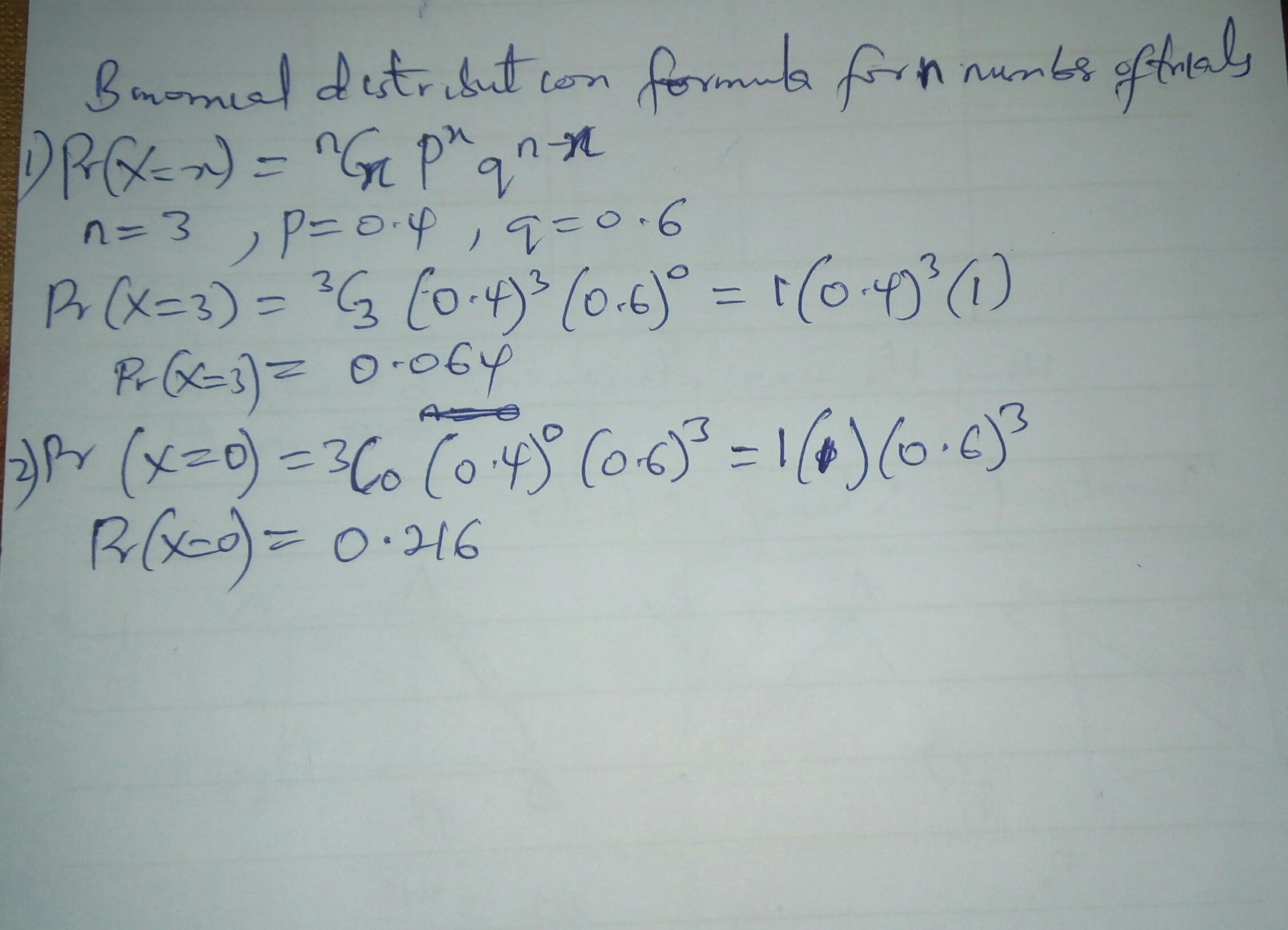 Pr(none) = 1 × (0.4)^0 × (0.6)³