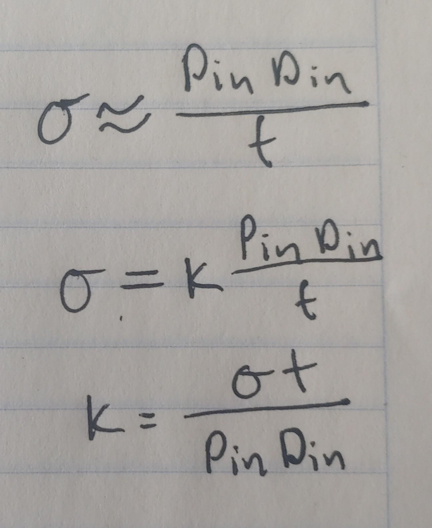 Since we know that thre Stress is directly proportional to Pin and Din but inversely proportional to thickness, we need to add a proportionality constant "k" to our equation to make it complete: