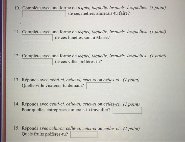 Complète avec une forme de "lequel", "laquelle", "lesquels", "lesquelles".