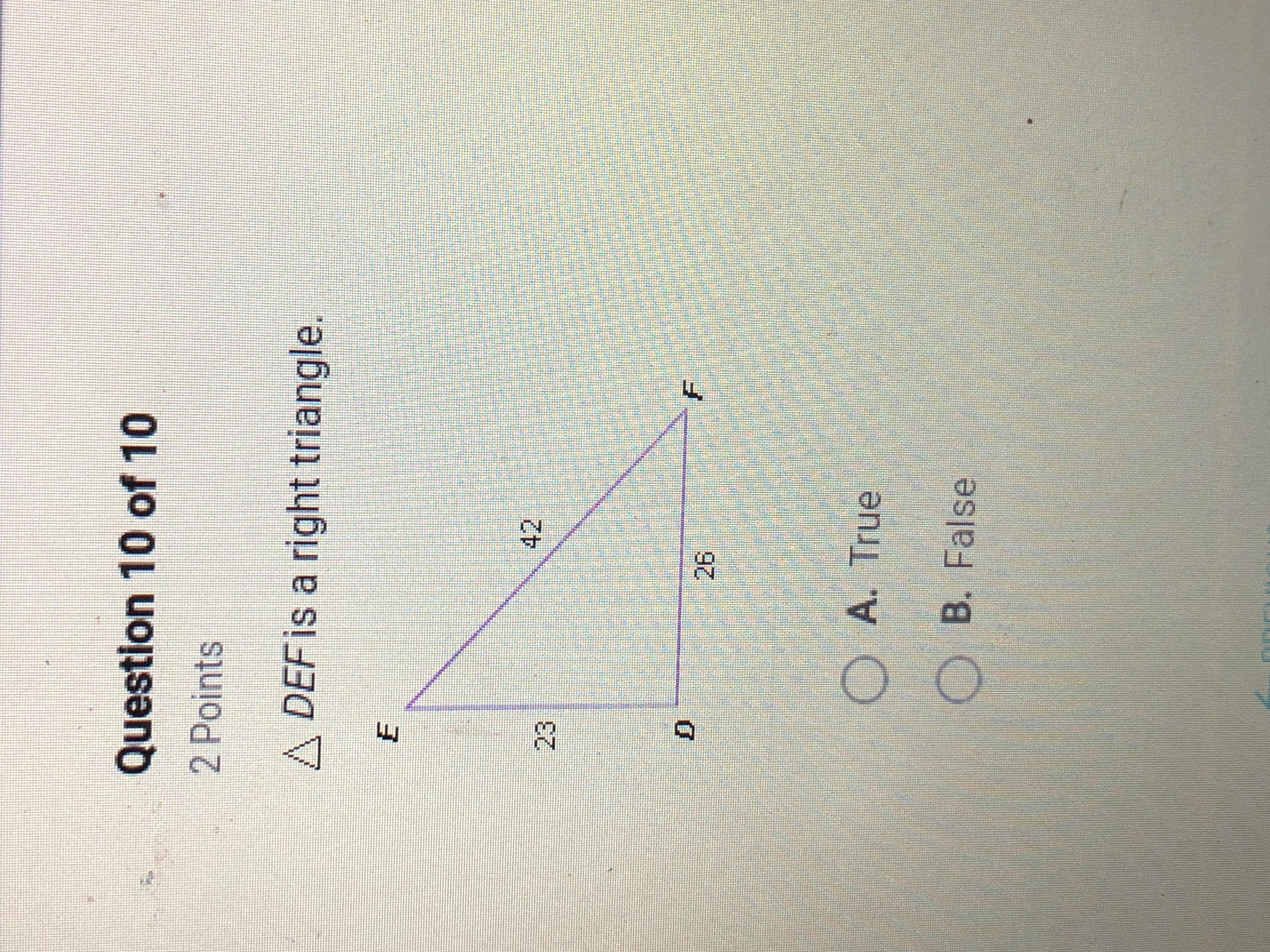 Yes, DEF is a right triangle.