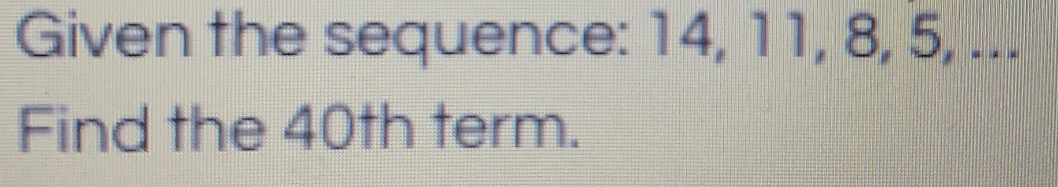 We know that the initial term is 14. The common difference is -3 because each term is <em>minus</em> 3 the previous one.