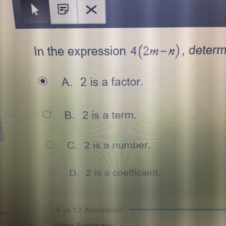 4) The number in front of a term, in this case 2m, is named coefficient. Therefore, the number 2 is the coefficient of the term 2m.