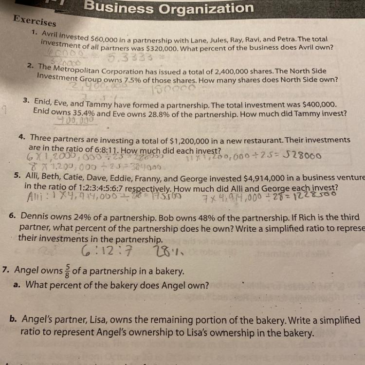 Angel owns 5/8 partnership in a bakery.