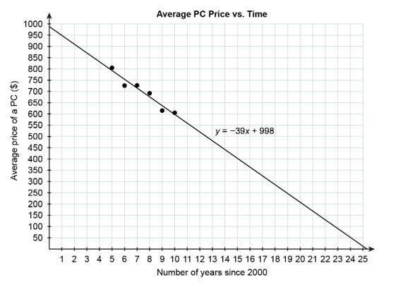 Answer: There is a linear relationship between the average price of PCs and the number of years that have passed since 2000.