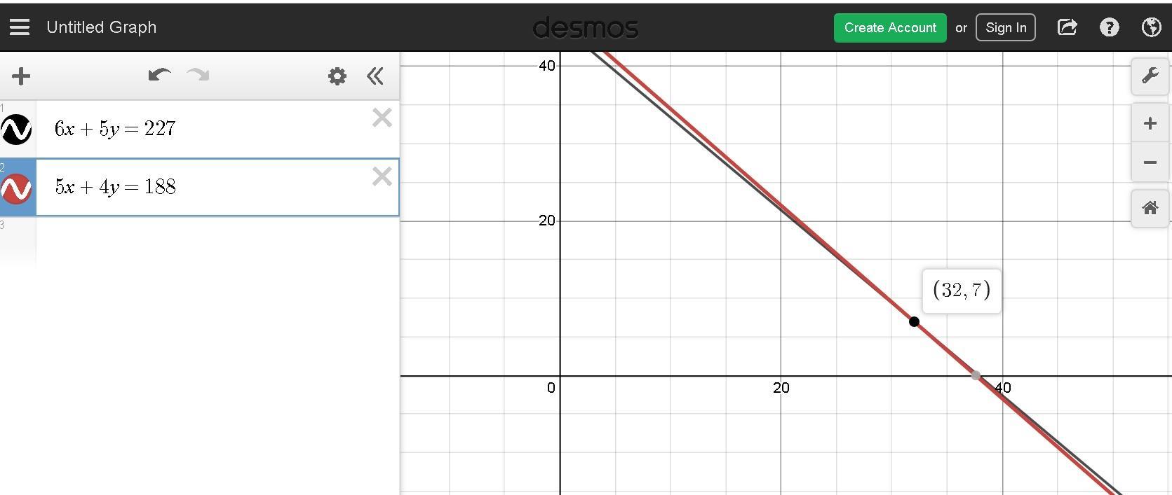 The solution is the point (32,7)