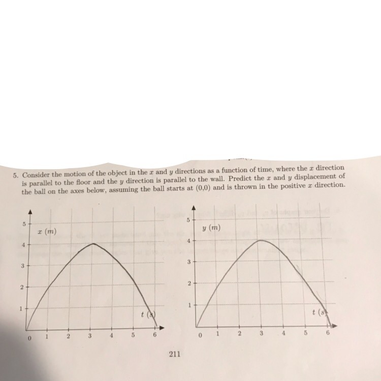 -- After 3 seconds, it's 4 meters from the wall and 4 meters above the floor. It's at the point (3, 4) on both graphs.