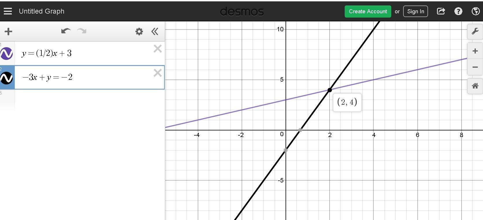 Part 2) The solution of the system of equations is (2,4)