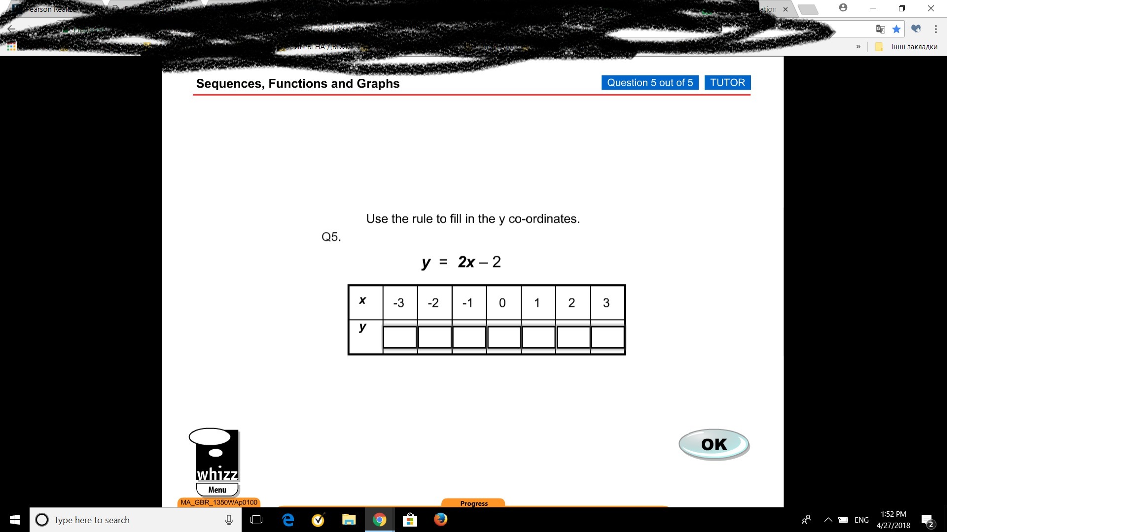 To find the answers, input the values in the x row in the equation to get your answers. Here are your answers in order from -3 to 3.