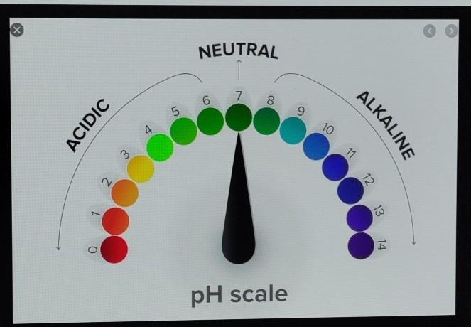 On a pH scale acid is numbers less then 7 while the numbers larger then 7 are basic (alkaline)