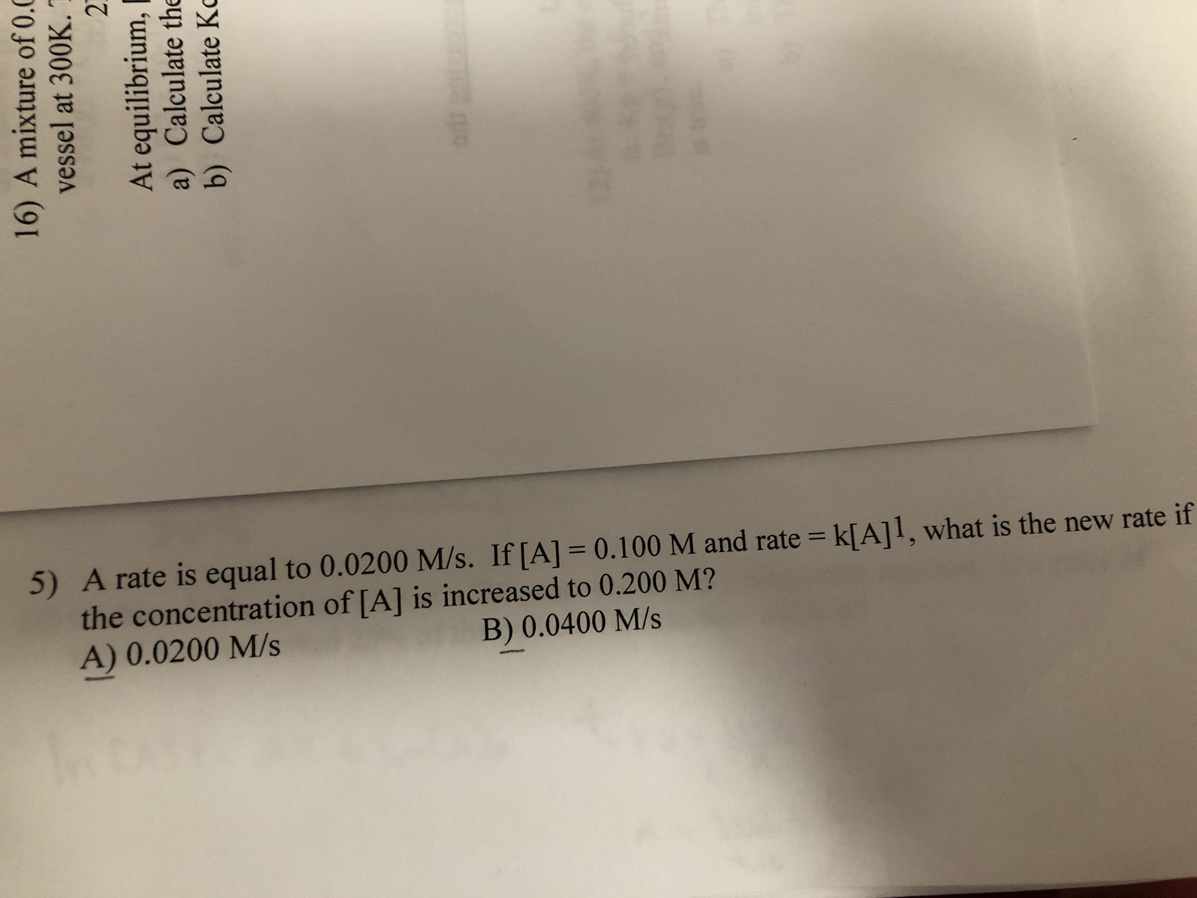 The new rate if the concentration of [A] increased to 0.200 M is 0.0800 m/s.