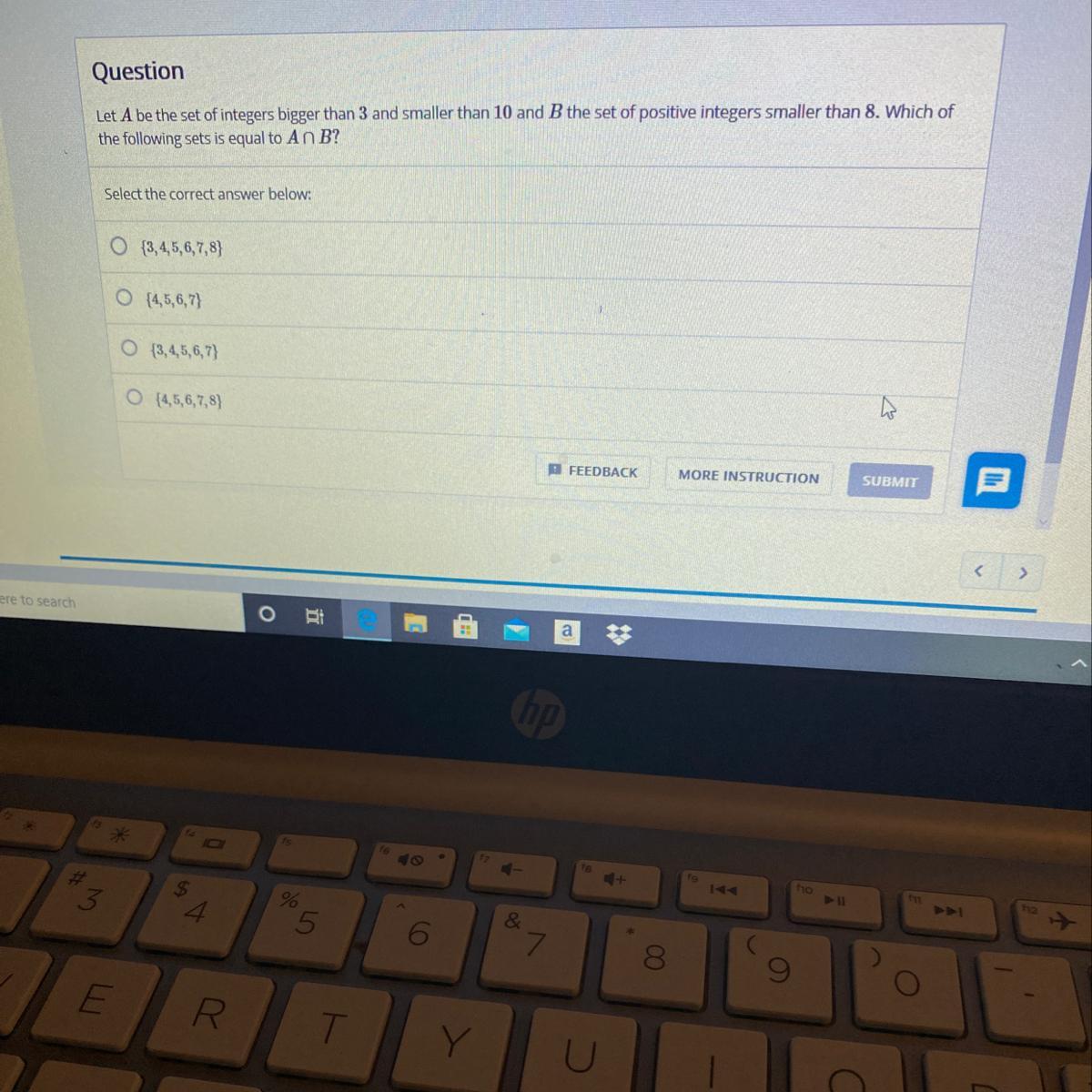 Answer: Choice B</h3><h3>{4,5,6,7}</h3>
