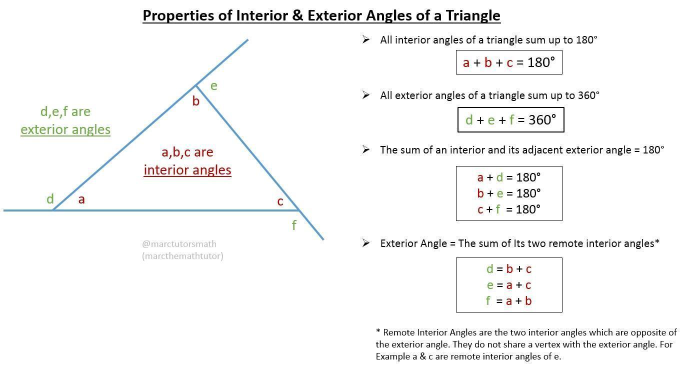 Recall that an exterior angle of a triangle is equal to the sum of its two remote interior angles (see attached)