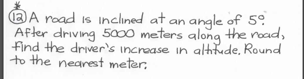 <u>using the formula Sin Ф = h ÷ hypothenuse</u>