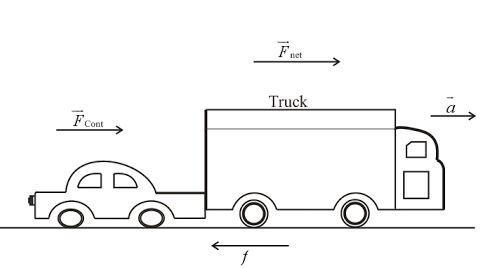 The net force on the car truck system is defined as the product of net mass of the system i.e., sum of mass of car and mass of truck and the acceleration with which the system is moving.