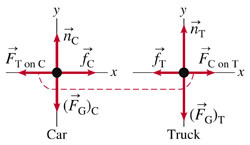 is the force applied by car on truck.