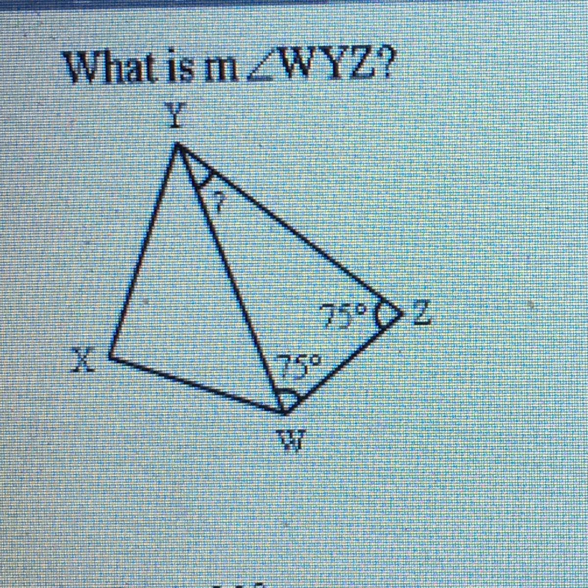 We know that the sum of interior angles in a triangle is 180°. Looking at ΔWYZ, we can write: