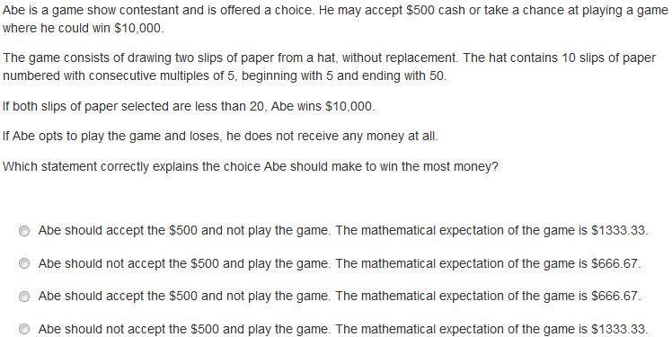 Answer: That’s weird I don’t see an option for the answer I got, I’m positive it’s correct though. It’s 24/25 or 0.96 in decimal form