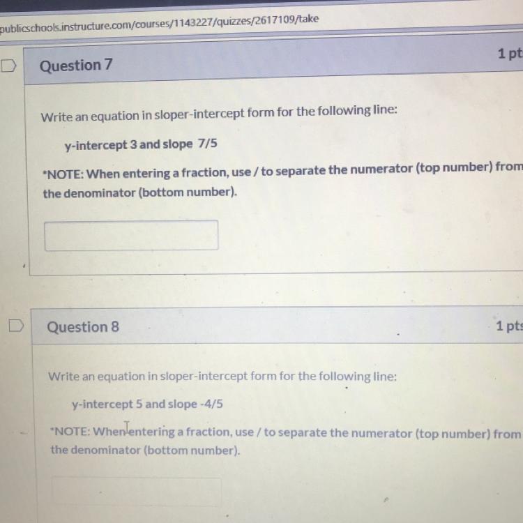 Y = 7/5x + 3 this is ur answer