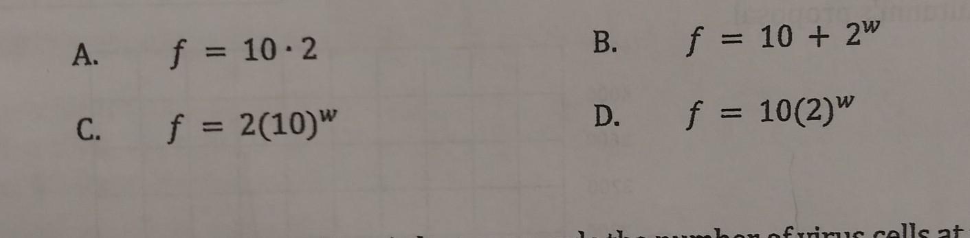 Example: for week 1, the number of freckles is 10 + 2¹ = 10 + 2 = 12, and the number of freckles must be 20.