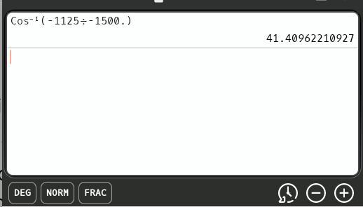 In the calculator screenshot, there is a decimal point in the fraction to force the angle result to be displayed as a numerical value. Otherwise, this calculator shows cos⁻¹(3/4), which isn't terribly helpful.