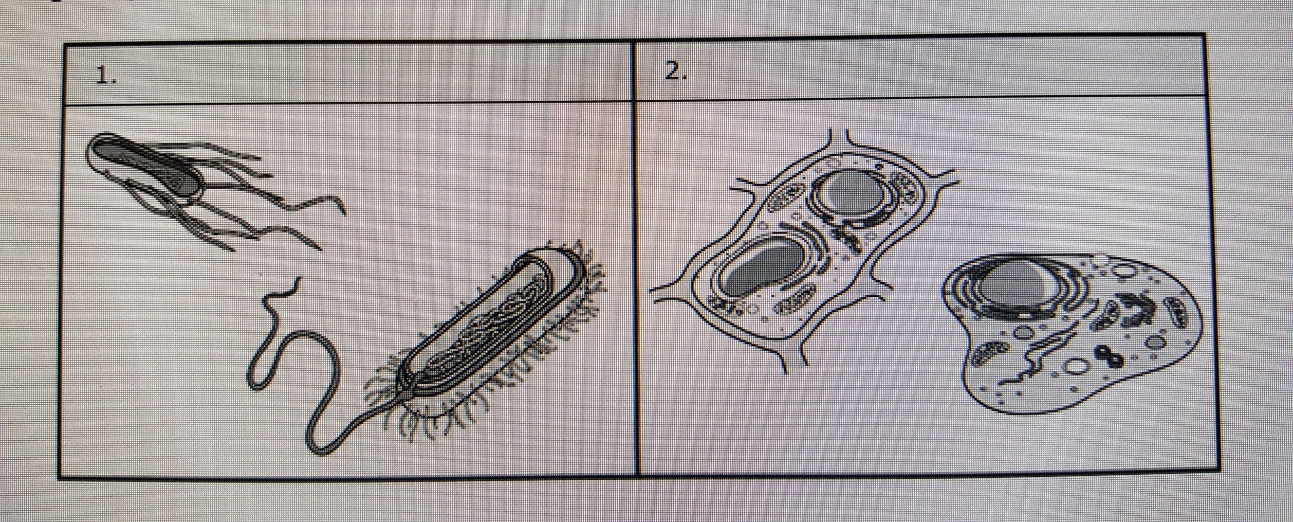 B. 1. Prokaryotic cells 2. Eukaryotic cells