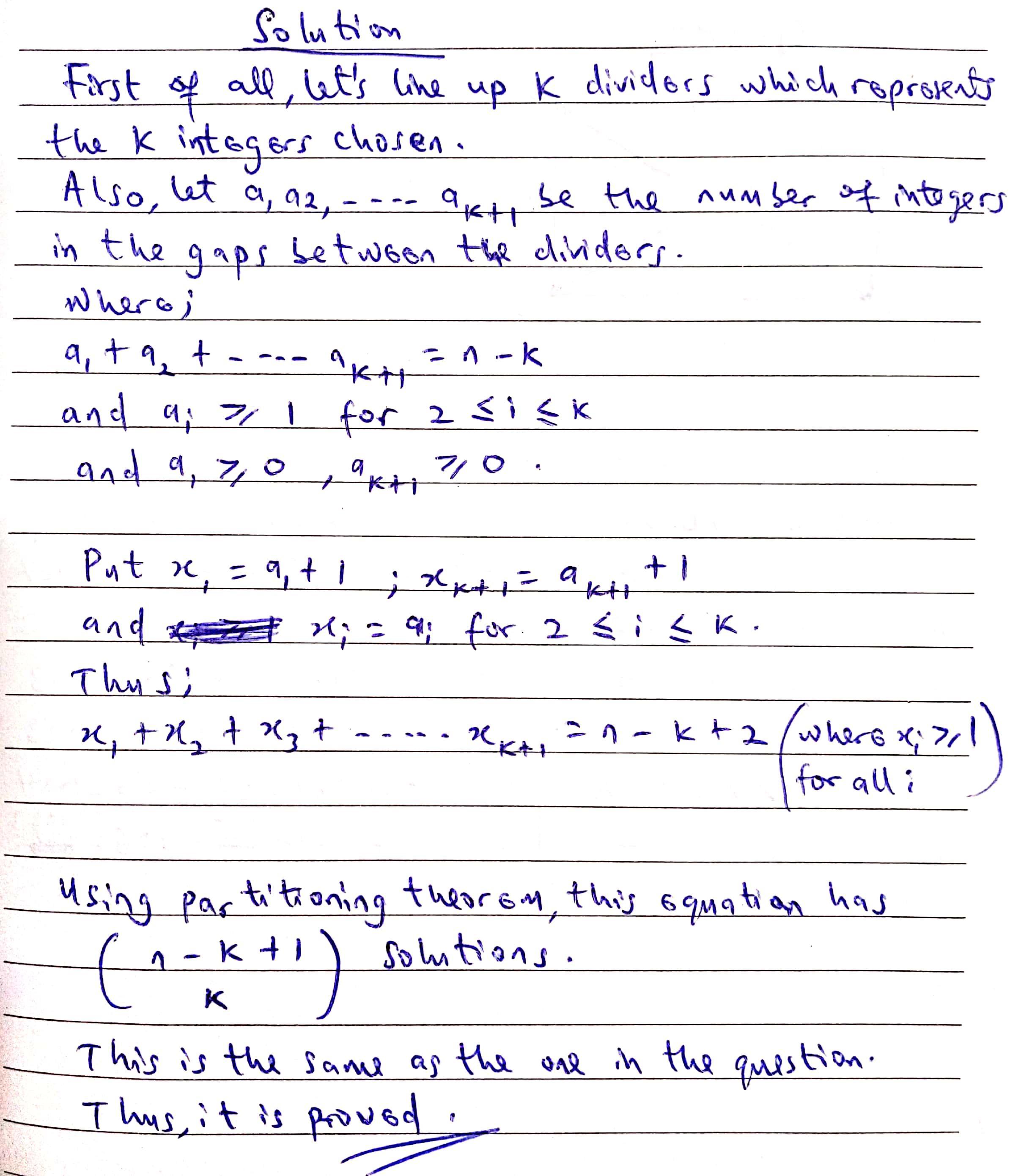 Given n objects are arranged in a row. A subset of these objects is called unfriendly, if no two of its elements are consecutive. Show that the number of unfriendly subsets of a k-element set is ( n−k+1 )
