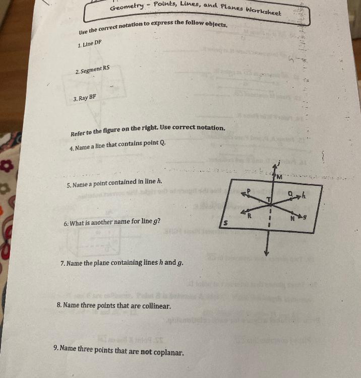 9. M, Q, and R because M is a line going through the plane.