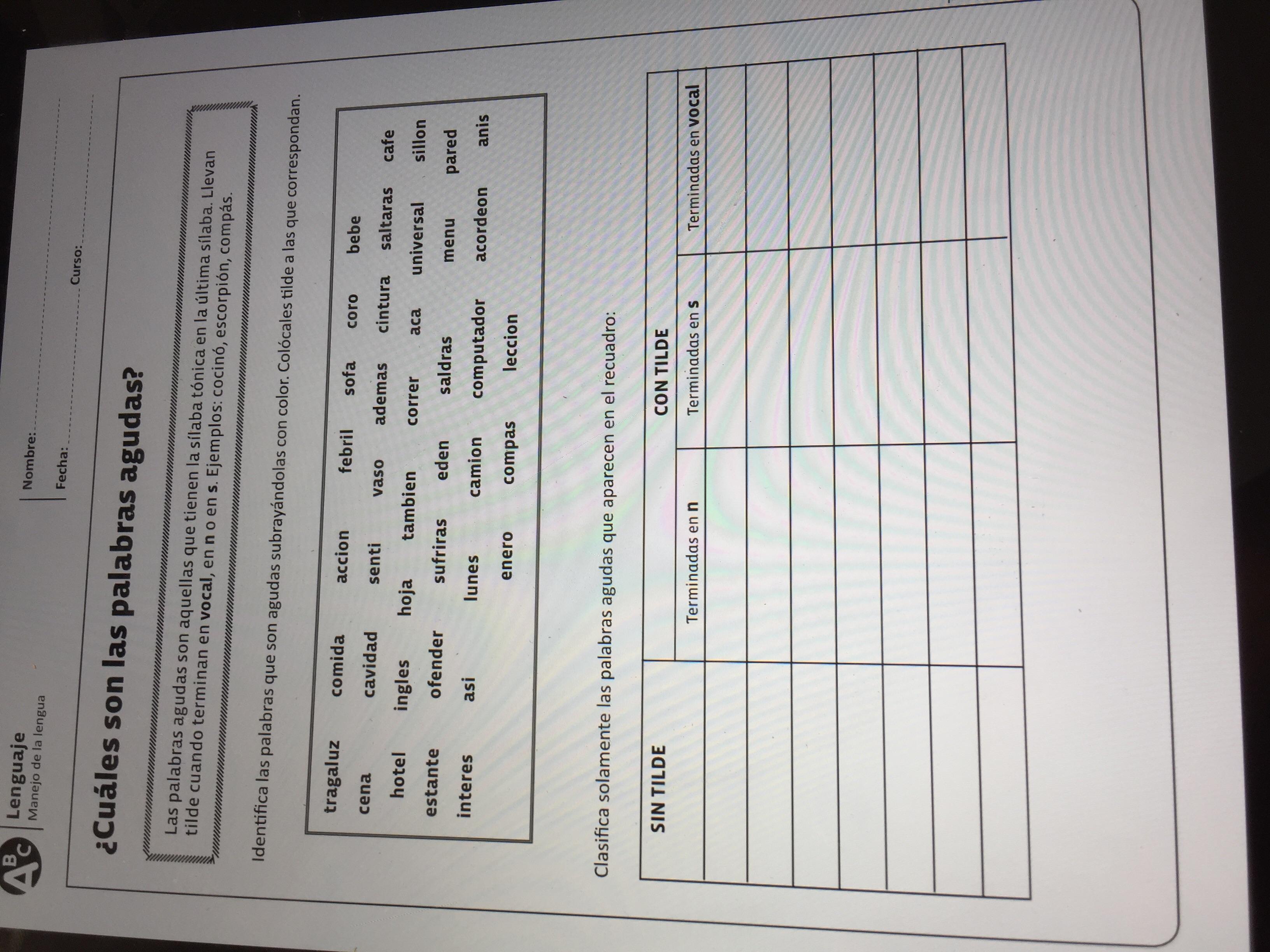 Now try finding which sílaba is strongest when you pronounce it, the answer is