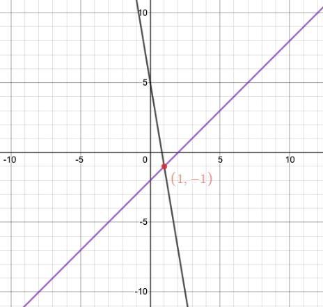 Answer: The point where the two graphed lines cross is the solution to the system of equations. (1, -1)