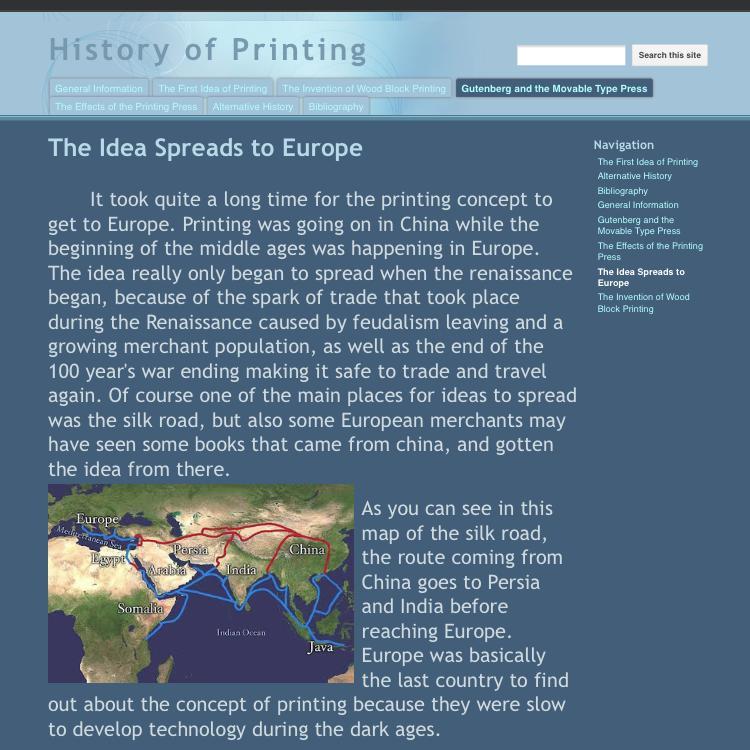 As you can see in this map of the silk road, the route coming from China goes to Persia and India before reaching Europe. Europe was basically the last country to find out about the concept of printing because they were slow to develop technology during the dark ages.