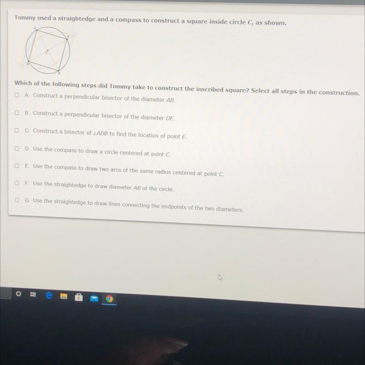 F. Use the straightedge to draw diameter AB of the circle