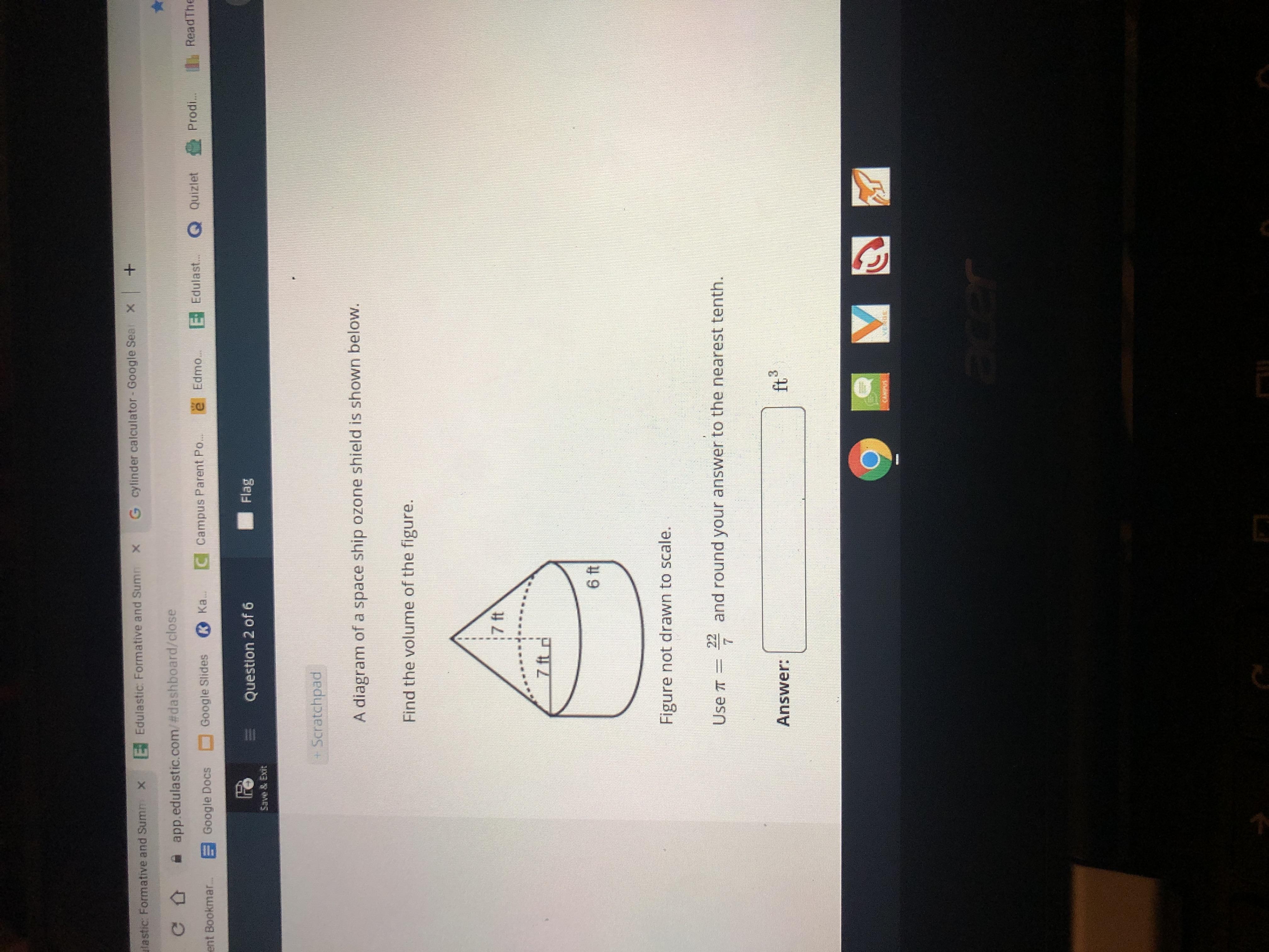 There are 12 inches in a foot so we can work this problem out in inches 3/5 is 80%......80% of 12 inches is 9.6 inches ....1/4 is 3 inches and 2/3 is 8 inches so we have 9.6,3,and8 now we multiply 9.6*3*8 for the answer to be 230.4 inches squared