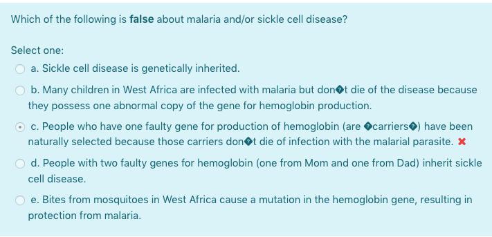A. This is a true statement because sickle cell anemia is genetic. So we can cross it off the list.