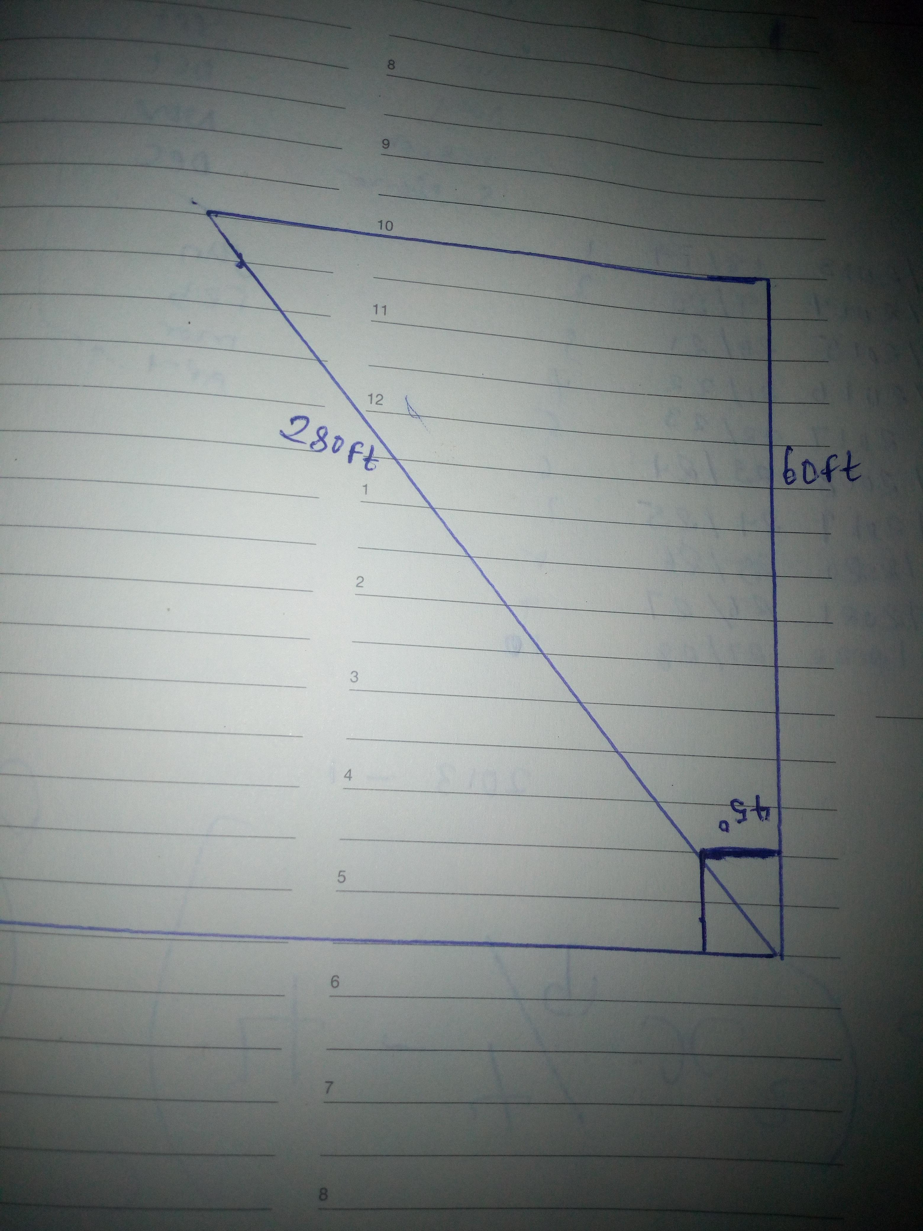 This is because the distance 60 feet and 280 feet are perpendicular to each other and they meet at a point that divides a right angle 90° into equal parts.