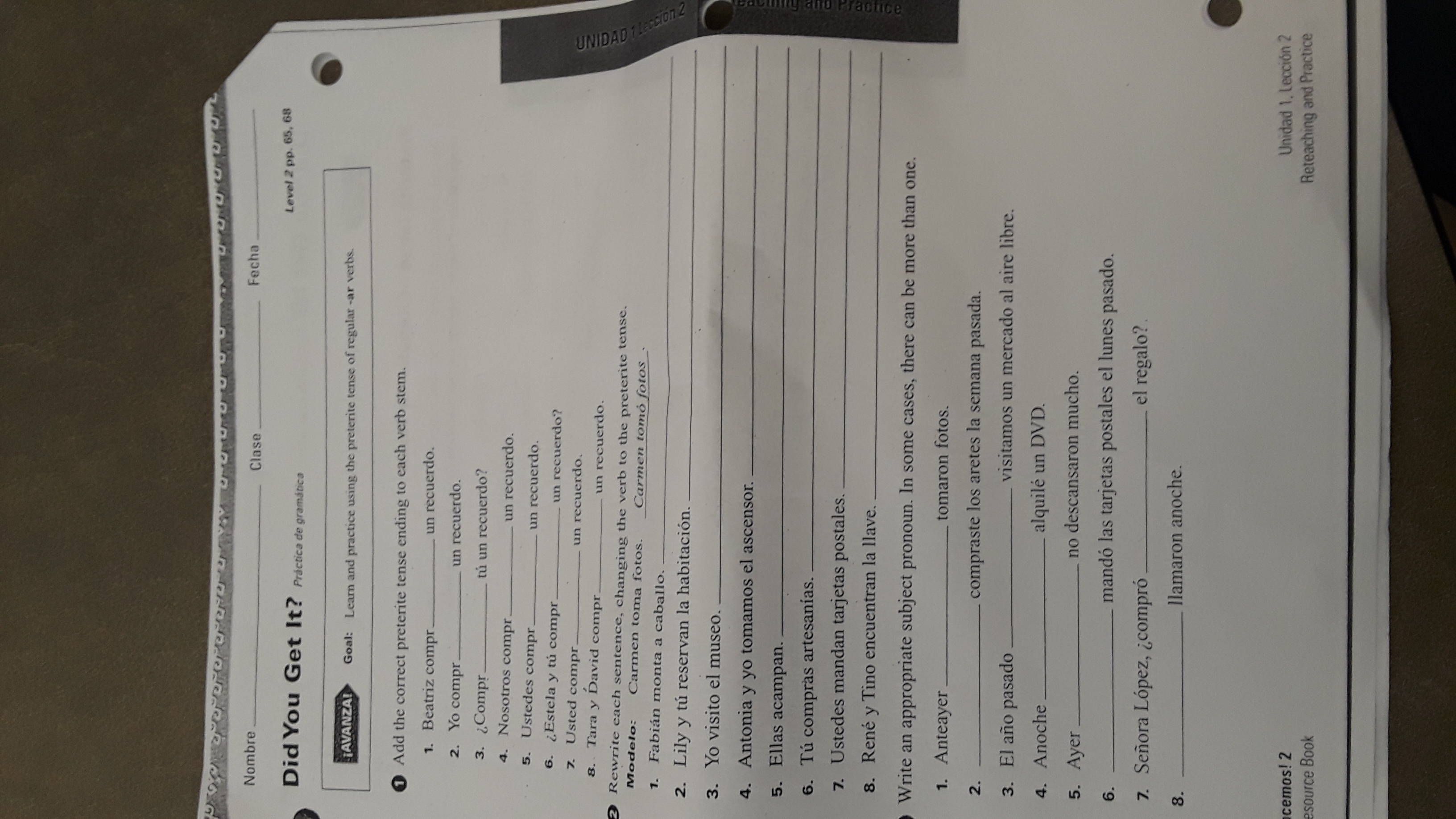 <h3>Write an appropiate subject pronoun. In some cases, there can be more than one.</h3>