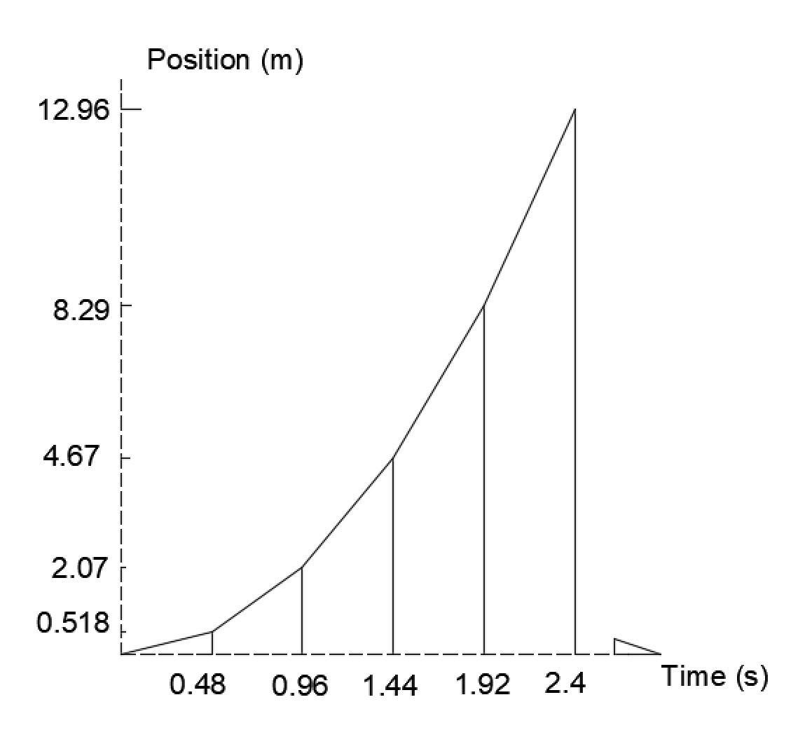 The next step is to use the following equation of kinematics, to be able to determine the position of the athlete for each speed.