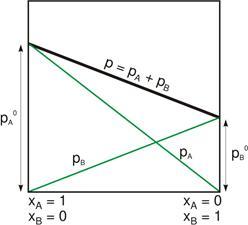 PT = xA · PAsaturation + xB · PBsaturation