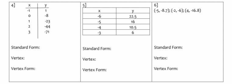 4) y = -3(x+2)^2 +4; y = -3x^2-12x-8; ABC=(-3, -12, -8)