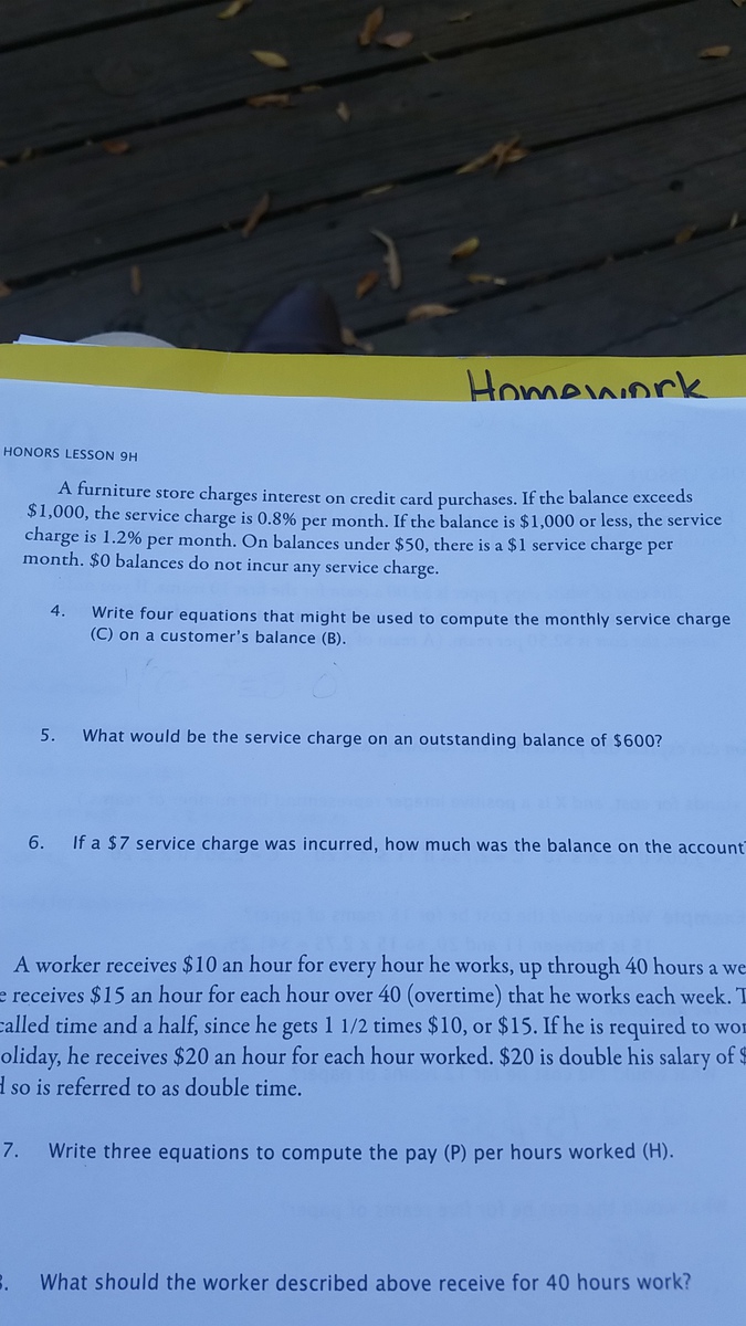 i used the remainder of the given information in the problem to get the equations -- the interest rate for b > 1000 is 0.8%, which is .008, b </= 1000 is .012, and so on. i hope this wasn't too terribly confusing, and let me know if you have any questions about how i came up with the equations!!