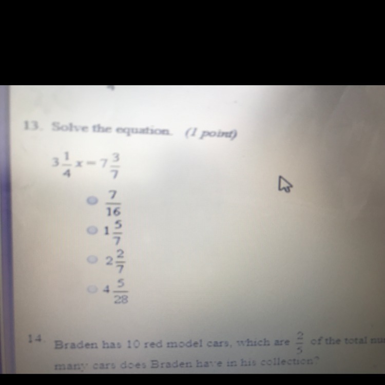 To simplify this equation, we need to multiply both sides by 4, to begin getting the x alone on the left side of the equation.